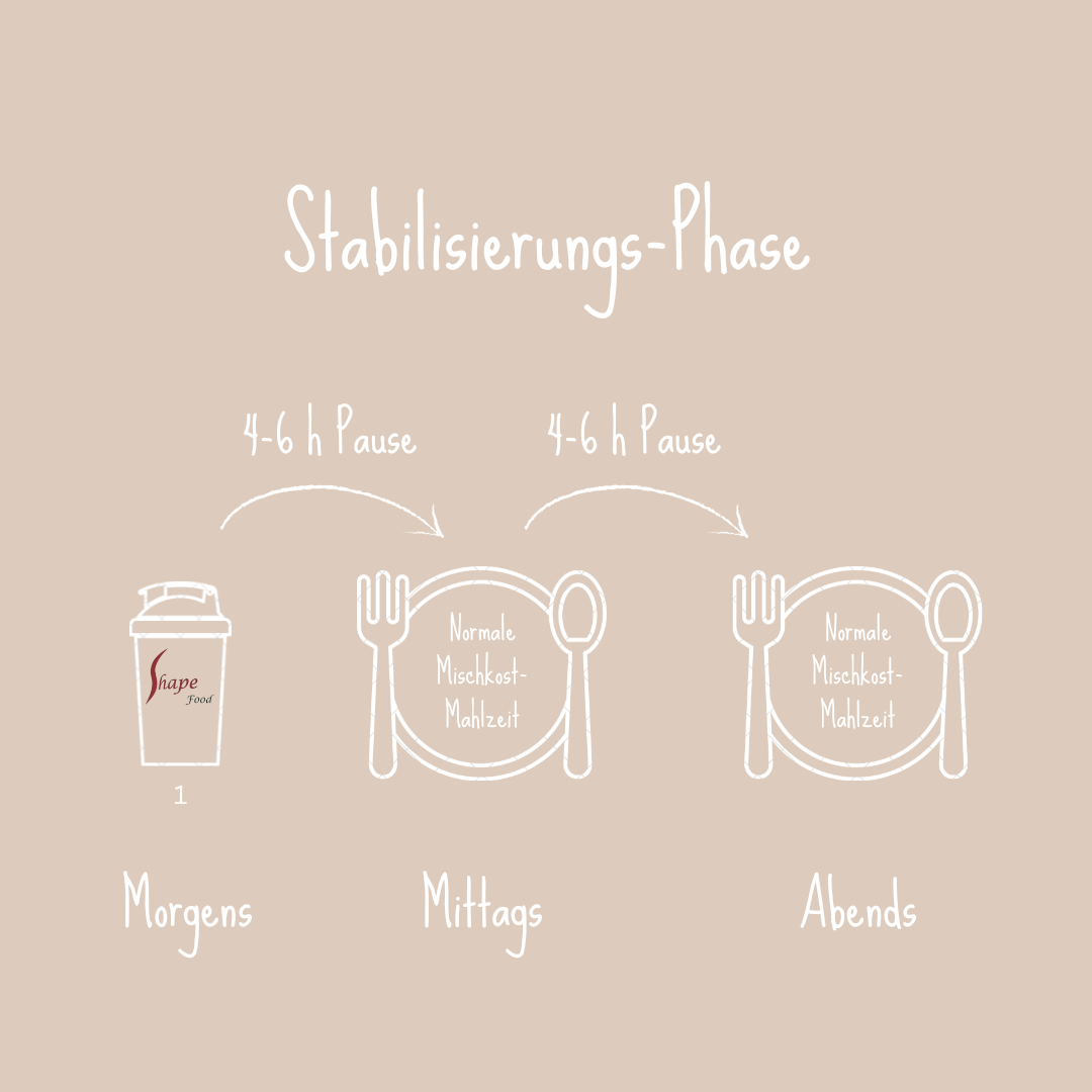Once you have reached your desired weight, you can easily stabilize and maintain your weight with shapefood by replacing one meal with shapefood per day .